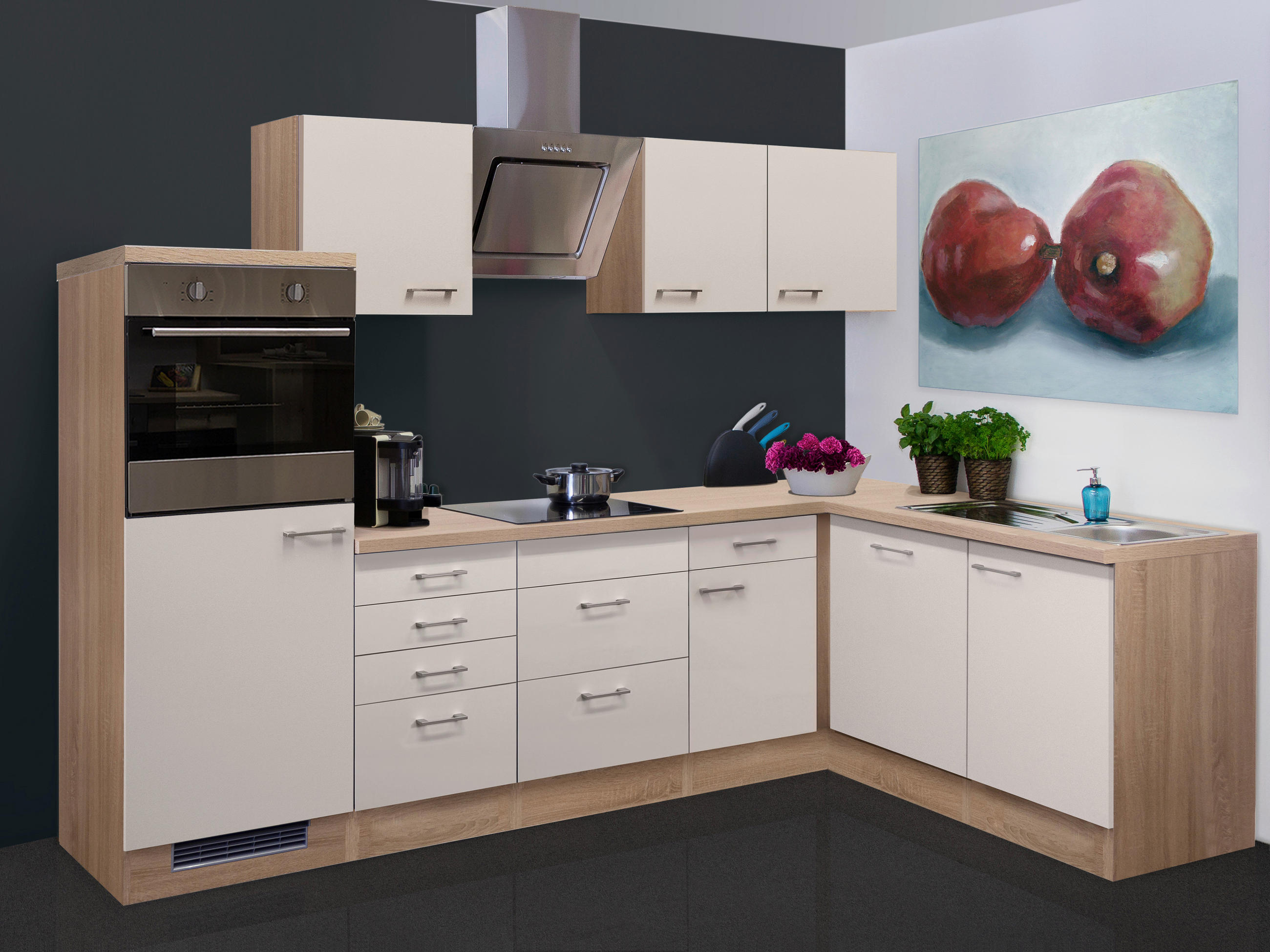 ROHOVÁ KUCHYNĚ NEPAL 280 – ONLINE D,00011232, KASCHMIR GL – KP+APL: SONOMA EICHE – INKL. SPÜLE UND E-GERÄTE