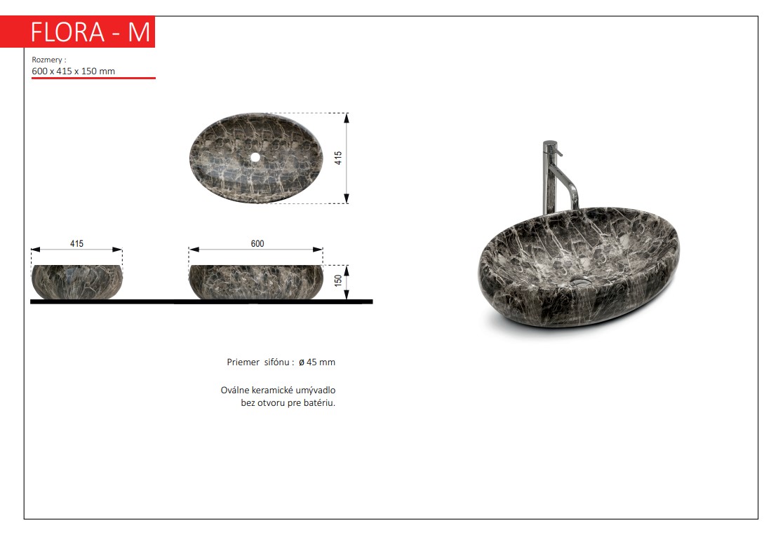 FLORA M keramické umyvadlo 60 x 41x 15 cm