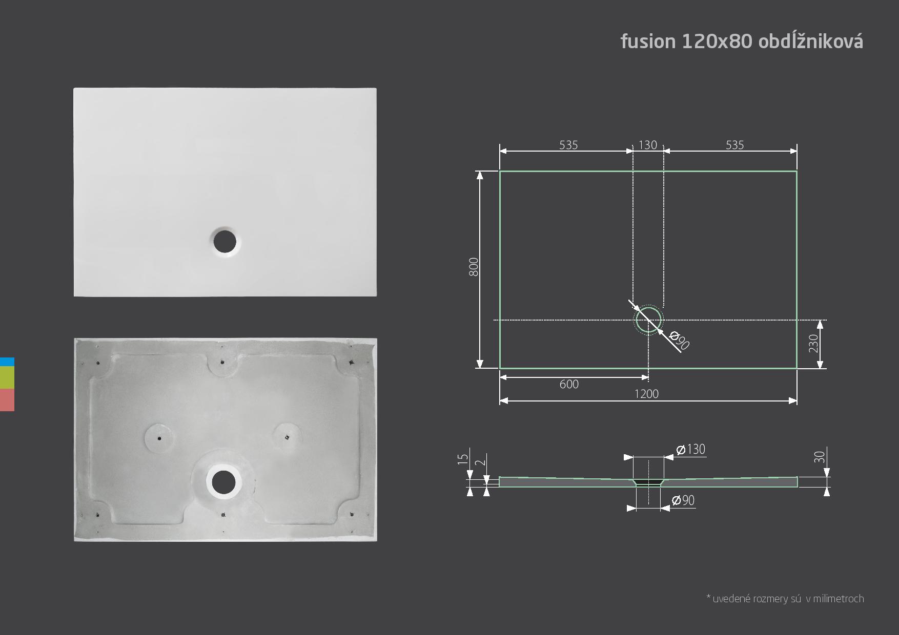 Nízká vanička FUSION 120×80 cm z litého mramoru obdélníková.