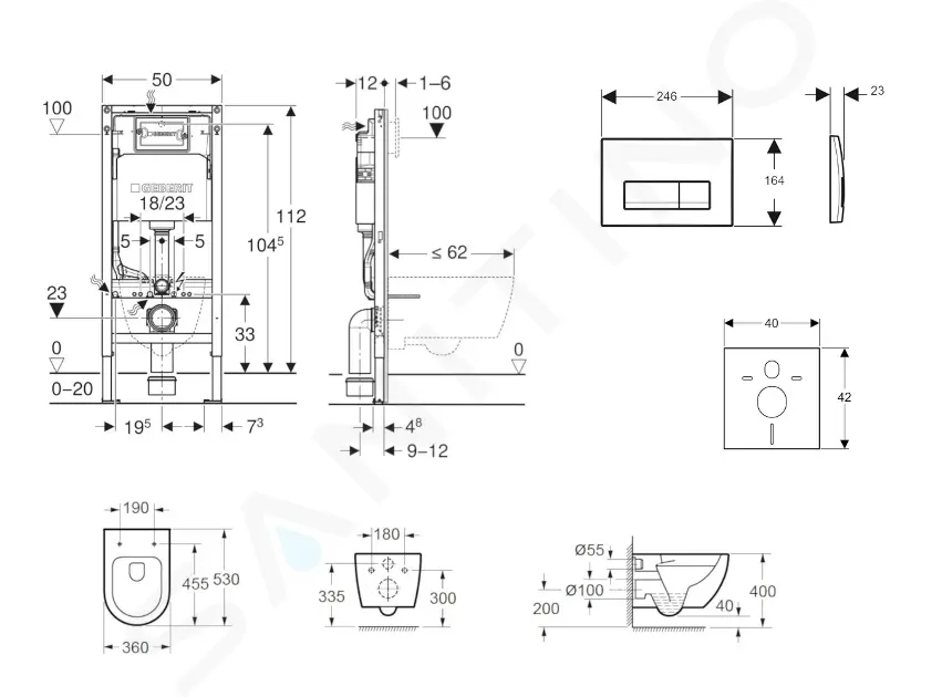 pro zabudování do předstěnové instalace na částečnou nebo celou výšku místnosti před masivní stěnou nebo stěnou prováděnou suchým procesem