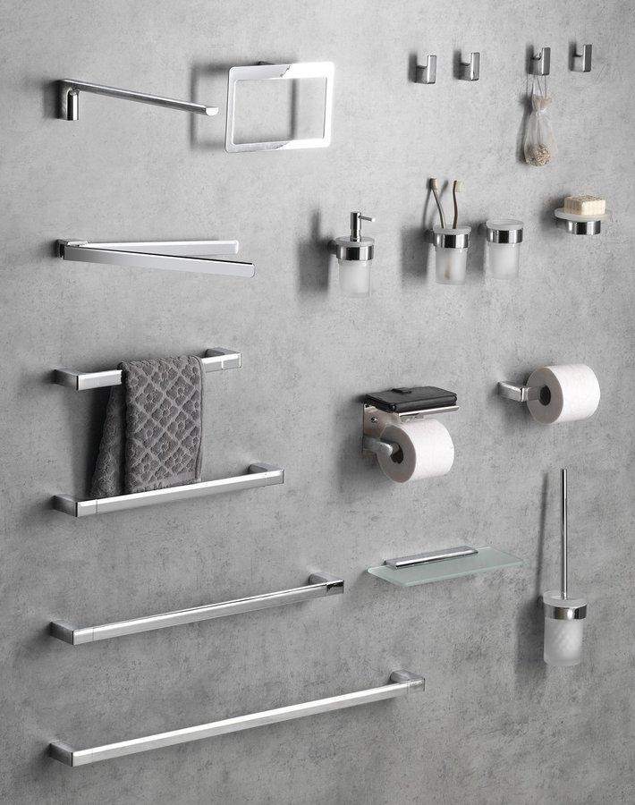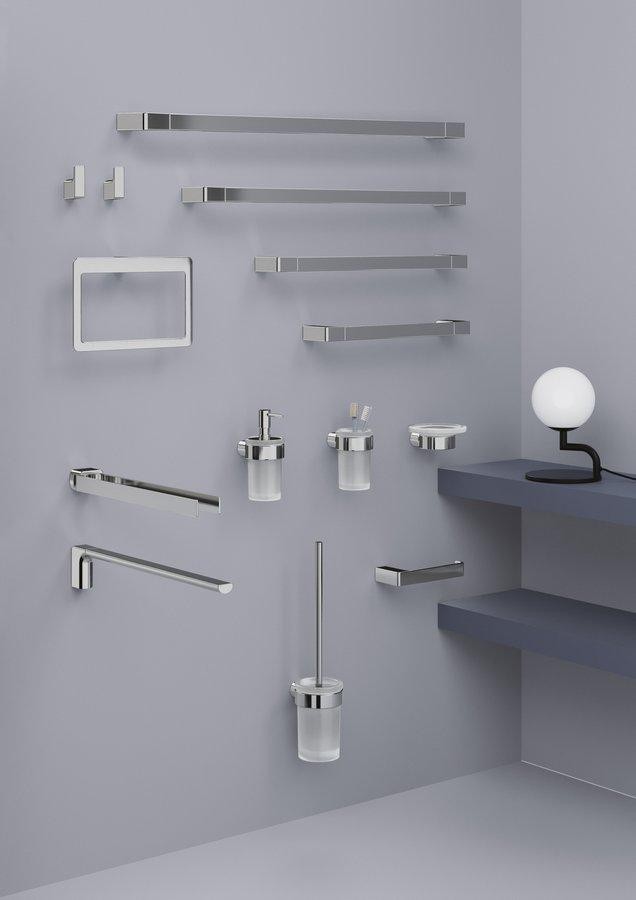 Jednotlivá ramena držáku jsou otočná o 180°.Snad inspirován pohledem na krásu Pyrenejí navrhl designér sérii doplňků PIRENEI. Masivní základna, kombinace přímých linií a zaoblených hran je spojením elegance a majestátnosti. Na výběr jsou doplňky v provedení v chromové, matné černé, matné bílé, gun metal, zlaté a matné zlaté variantě.