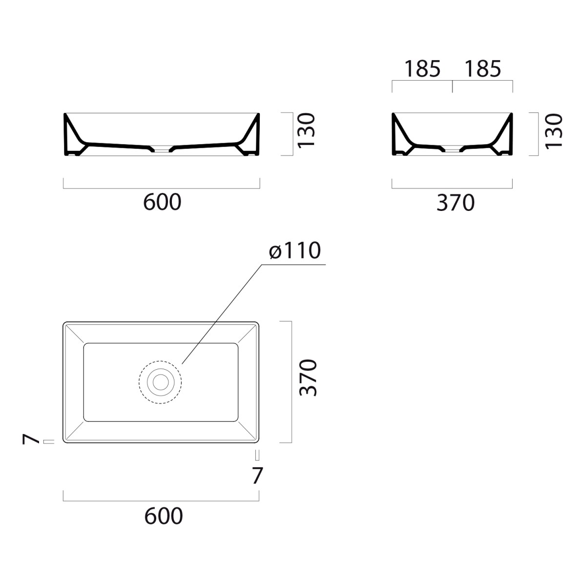 GSI – KUBE X keramické umyvadlo na desku, 60x37cm, bílá ExtraGlaze 945311