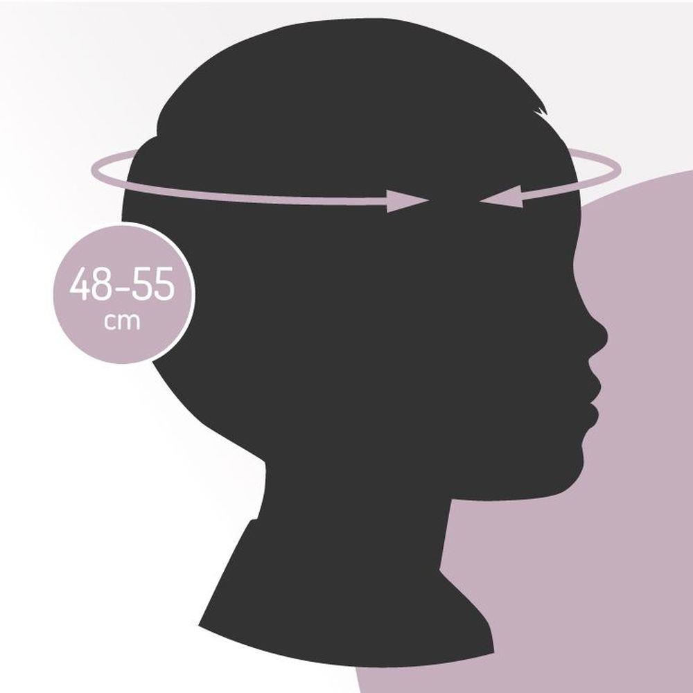 Je lehká, prodyšná a má extra pěnové polstrování pro dokonalou ochranu a pohodlí. Je vybavena větracími otvory, které zajišťují správnou cirkulaci vzduchu a dávají jistotu, že se hlava vašeho dítěte nebude nadměrně potit ani v horkých dnech. Snadno ji upravíte na obvod hlavy od 48 do 55 cm a s pomocí nastavitelných pásek pod bradou se ani nehne.