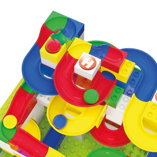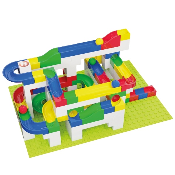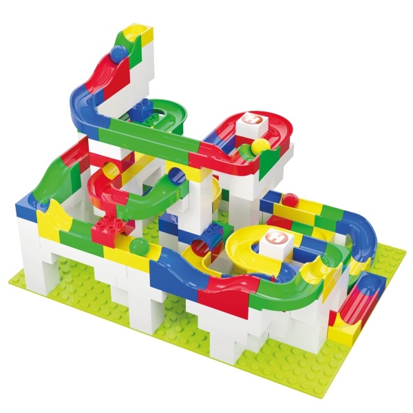Obsah balení: 213 ks (90x prvek dráhy, 118x stavební kostka, 1x základní deska 32 x 45 cm, 4x kulička), návod.