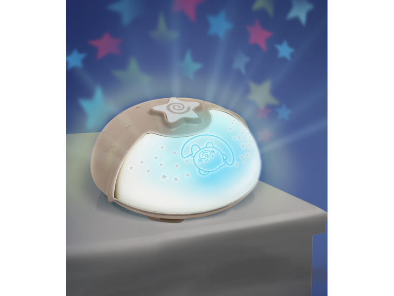 Lampička nabízí 6 něžných melodií a 3 varianty zvuků přírody s automatickým vypnutím po 10 minutách. Pokud se dítě v noci probudí, senzor zvuku aktivuje uklidňující jemné světlo.