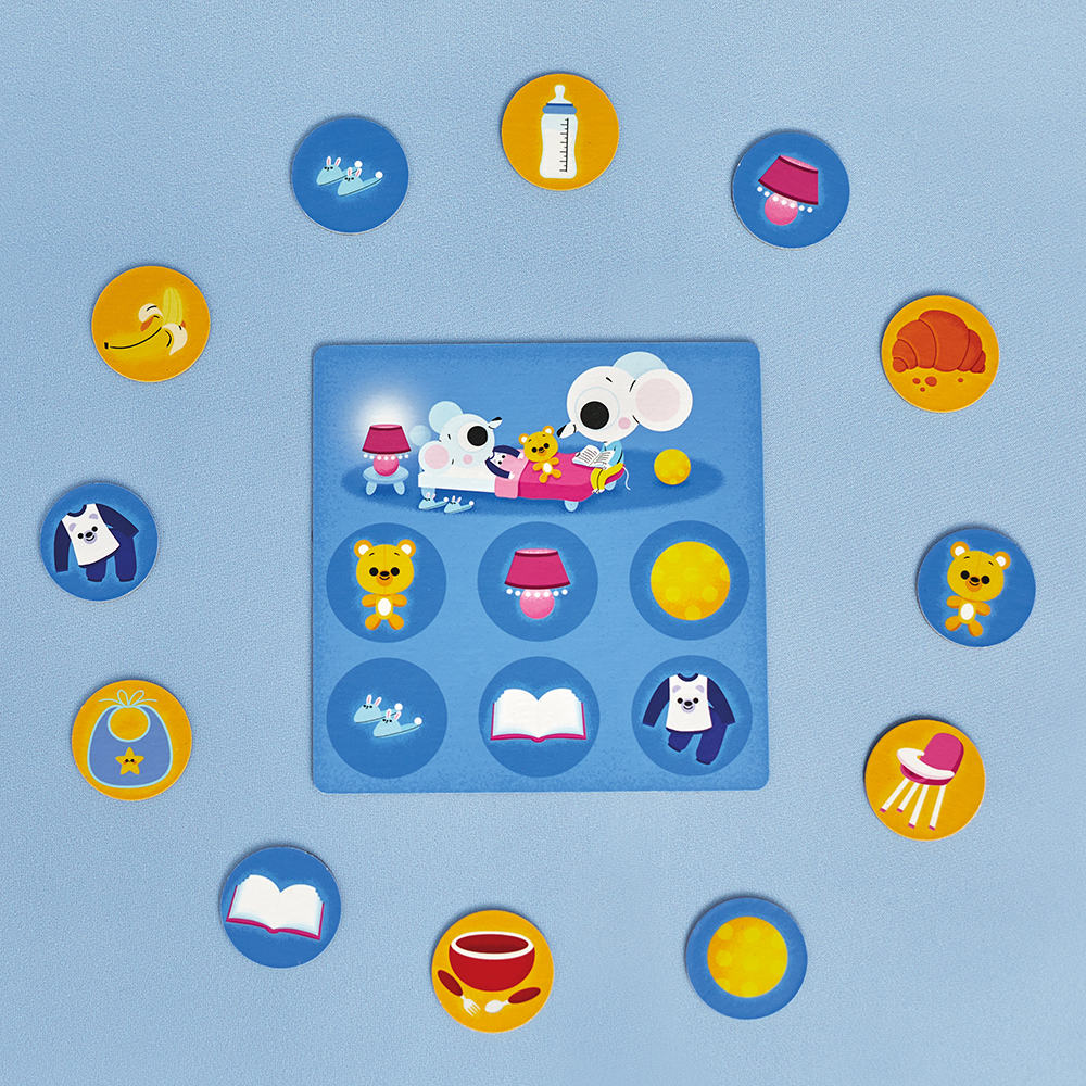 Krásně ilustrovaná vzdělávací hra z pevného FSC™ kartonu byla navržena pro děti od 2 let a pomáhá jim rozvíjet slovní zásobu, schopnost přiřazování a soustředění. Každá herní deska představuje jinou část domu (kuchyň, ložnice, koupelna a zahrada) a děti se učí rozeznávat známé předměty ve svém okolí (6 konkrétních předmětů v každé části domu – např. dětská láhev, pyžamo, fén, konev atd.). Velké žetony jsou navrženy speciálně pro malé ruce, takže se děti mohou snadno zapojit a bavit se s více hráči. Ideální první stolní hra, kterou zvládnou i ti nejmenší. Děti při hře rozvíjí své jazykové a pozorovací schopnosti. Skvělý tip na dárek, který děti zaujme a také je něco naučí.