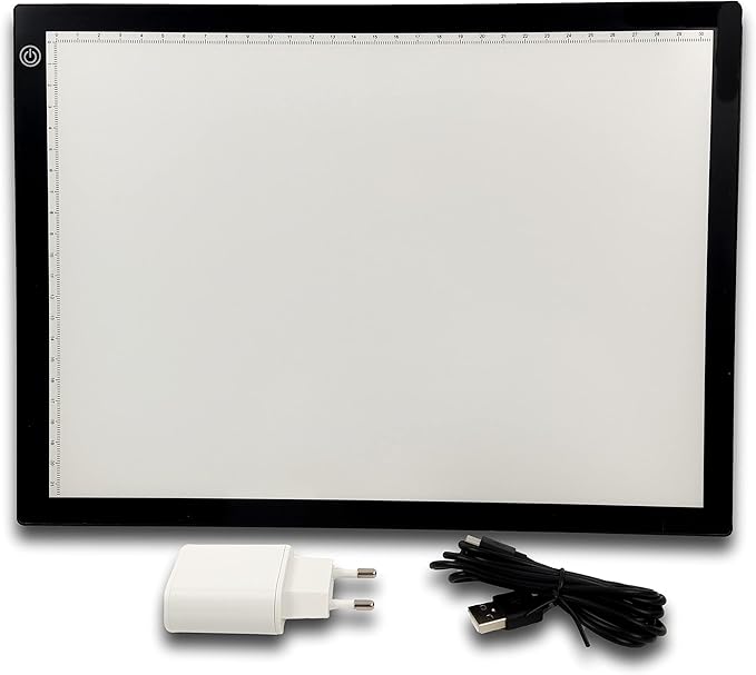 Extra plochý design pro snadné přenášeníLehkost a kompaktnostSvětelný panel je tenký pouhých 18 mm, což ho činí jedním z nejkompaktnějších na trhu. Díky tomu jej můžete snadno přenášet a využívat kdekoli – ať už doma, ve škole nebo na cestách.Jeho lehká konstrukce z odolného ABS plastu zajišťuje, že se nepřehřívá a je bezpečný i pro děti. Panel snadno schováte do batohu či tašky, takže je vždy po ruce pro vaše kreativní projekty.Výkonné LED podsvícení s regulací jasuŠetření zraku a všestranné použitíPanel nabízí jasnost 4000 luxů, která dokonale prosvítí i silnější papíry. Díky rovnoměrnému rozložení světla bez tmavých míst je ideální pro kreslení, obkreslování a další kreativní činnosti. Učení se písmen, číslic a tvarů je s podsvíceným panelem zábavnější a názornější. Fotografové ocení jeho schopnost prohlížet negativy a diapozitivy s vysokou jasností a přesností.S plynulou regulací jasu můžete přizpůsobit intenzitu světla svým potřebám, což šetří oči při dlouhodobém používání. Přesná stupnice Po obvodu desky je měřítko v centimetrech, které pomáhá při přesném umístění a zarovnání kreseb.Technické parametryFormátA4Tloušťka18 mmMateriálABS plastZdroj světlaLED diodyBarva světlaDenní světloJasnost4000 luxůRegulace jasuAno, plynulý stmívačNapájeníUSB (micro USB kabel)KompatibilitaSíťový adaptér, počítač, powerbankaPoužitíObkreslování, kreslení, kaligrafie, hra s průsvitnými materiály, diamantové malování, prohlížení negativůČištěníPovrch panelu otírejte suchým nebo mírně navlhčeným hadříkem. Nepoužívejte agresivní čisticí prostředky.