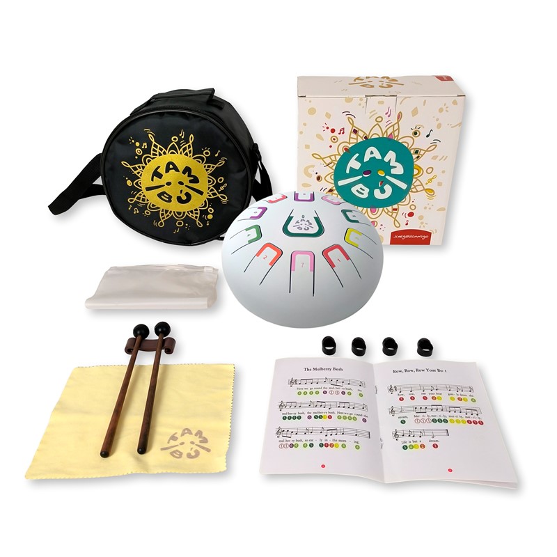 TAMBÚ je melodický nástroj s jemným, sametovým zvukem, který přirozeně navozuje pocit klidu a uvolnění. Je ideální pro děti i dospělé, úplné začátečníky i pokročilé. Díky barevnému a číselnému značení tónů je učení snadné a intuitivní, takže se do hraní můžete pustit téměř okamžitě, bez předchozích hudebních zkušeností. Nástroj je laděný do diatonické stupnice G dur (Sol), která zní harmonicky a příjemně při každém úderu, ať už hrajete podle not nebo jen tak pro radost. TAMBÚ je skvělý společník pro chvíle relaxace, tvořivého objevování i společné hudební zážitky s dětmi. Součástí balení jsou také jednoduché noty v anglickém jazyce.