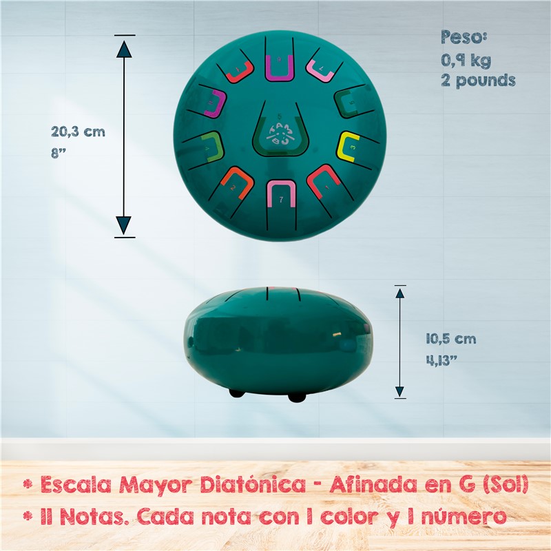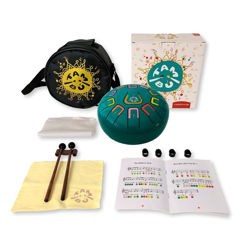 TAMBÚ je melodický nástroj s jemným, sametovým zvukem, který přirozeně navozuje pocit klidu a uvolnění. Je ideální pro děti i dospělé, úplné začátečníky i pokročilé. Díky barevnému a číselnému značení tónů je učení snadné a intuitivní, takže se do hraní můžete pustit téměř okamžitě, bez předchozích hudebních zkušeností. Nástroj je laděný do diatonické stupnice G dur (Sol), která zní harmonicky a příjemně při každém úderu, ať už hrajete podle not nebo jen tak pro radost. TAMBÚ je skvělý společník pro chvíle relaxace, tvořivého objevování i společné hudební zážitky s dětmi. Součástí balení jsou také jednoduché noty v anglickém jazyce.