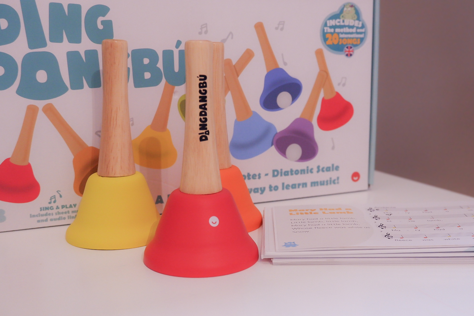 Barevné tóny pro snadné učeníHraní podle barev bez znalosti notKaždý zvoneček má svůj vlastní tón, číslo i barvu, takže děti rychle pochopí souvislost. Postupně tak objevují, že kombinací jednotlivých zvonečků mohou vytvářet jednoduché melodie.Díky barevnému značení tónů je učení snadné a intuitivní, takže se do hraní můžete pustit téměř okamžitě, bez předchozích hudebních zkušeností. Součástí balení je anglický zpěvník s 20 písněmi vytvořený muzikoterapeutem a psychologem. Můžete objednat také noty v češtině, které jsou kompatibilní i s dalšími nástroji z naší nabídky.Technické parametryObsah balení8x zvoneček, zpěvník v angličtiněVěkod 3 let, 36m+Vhodný doplněk ke zvonečkůmNoty pro Tambú, DingdangBú a XilaBú v češtiněPodpora rozvoje dětíHudební hračka pro každý domovHraní na zvonečky DingdangBú podporuje celou řadu dovedností, které jsou důležité pro zdravý vývoj dítěte. Jemným třesením zvonečku děti procvičují jemnou motoriku, koordinaci ruky i přesnost pohybu. Současně se učí soustředit, vnímat rytmus a rozpoznávat jednotlivé tóny.Barevné označení tónů navíc rozvíjí smyslové vnímání, paměť a logické spojování informací. Děti si postupně uvědomují vztah mezi barvou, zvukem a pořadím tónů, což podporuje jejich koncentraci, hudební sluch i schopnost následovat jednoduché vzory. Výhody produktu Snadné ovládání Zvonečky lze snadno ovládat jemným zatřesením, což je ideální pro malé děti. Rozvoj dovedností Podporují jemnou motoriku, rytmus a hudební sluch, to je klíčové pro dětský rozvoj. Barevné učení Každý zvonek má svou barvu, to pomáhá dětem rychle se zorientovat v tónech. Skupinová hra Zvonečky jsou ideální pro skupinové hraní, učí děti spolupráci. Hudba bez stresu Hraní podle barev bez not činí hudbu přístupnou a zábavnou. Bezpečné materiály Vyrobeno z kvalitních a bezpečných materiálů pro děti od 3 let. Jaký je minimální věk pro hraní na zvonečky? Zvonečky jsou vhodné pro děti od 3 let, které zvládnou jemné zatřesení. Jak se zvonečky ladí? Zvonečky jsou laděny do diatonické stupnice, což zajišťuje čistý zvuk. Obsahuje sada nějaké příslušenství? Ano, součástí je zpěvník s 20 písněmi pro hraní podle barev.
