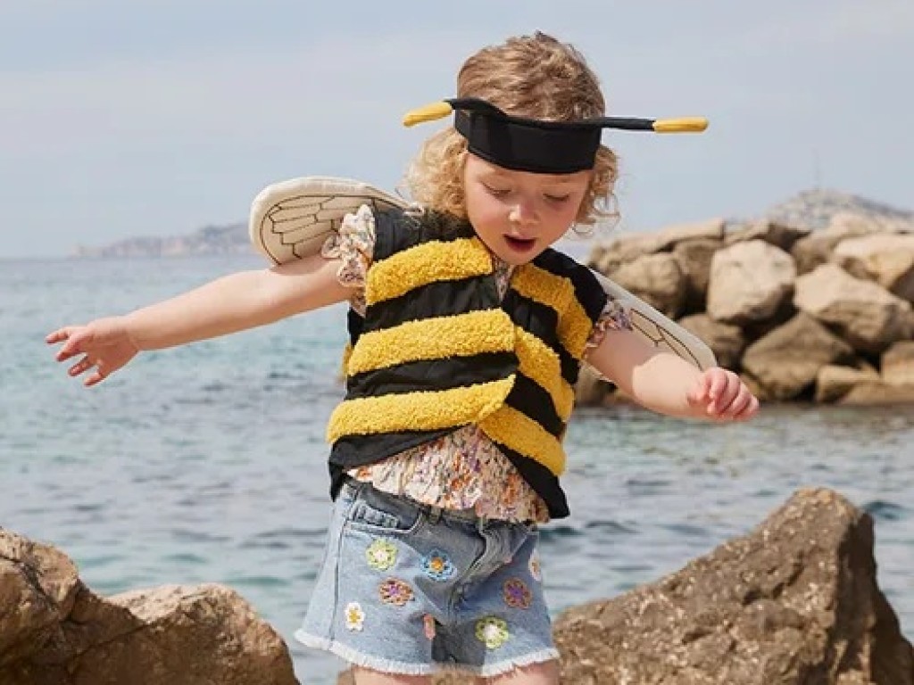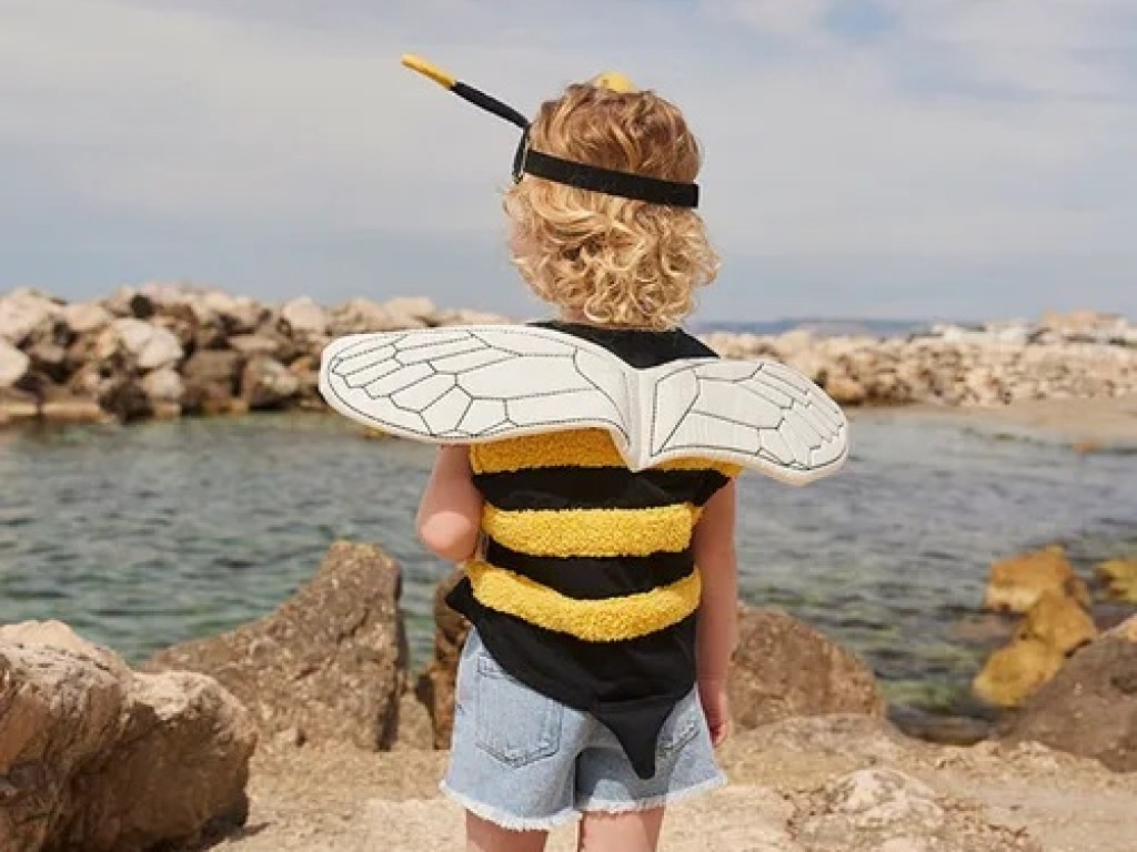 Roztomilý kostým čmeláčka nebo včelky přinese dětem mnoho zábavných chvilek nejen na maškarním plese. Pruhovanou vestu z měkkých a nadýchaných žlutých proužků s vyšívanými polstrovanými křidélky doplňuje čelenka s malými tykadly, která se stejně jako vesta pohodlně zapíná na suchý zip.