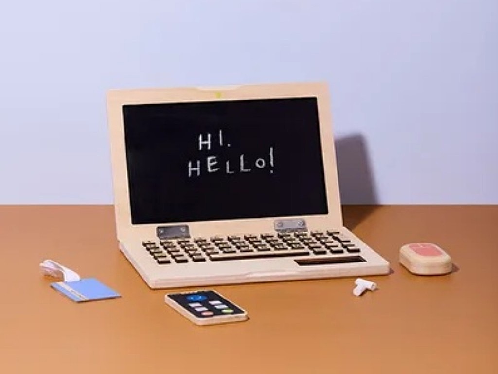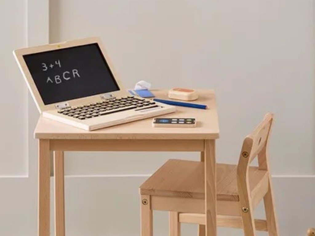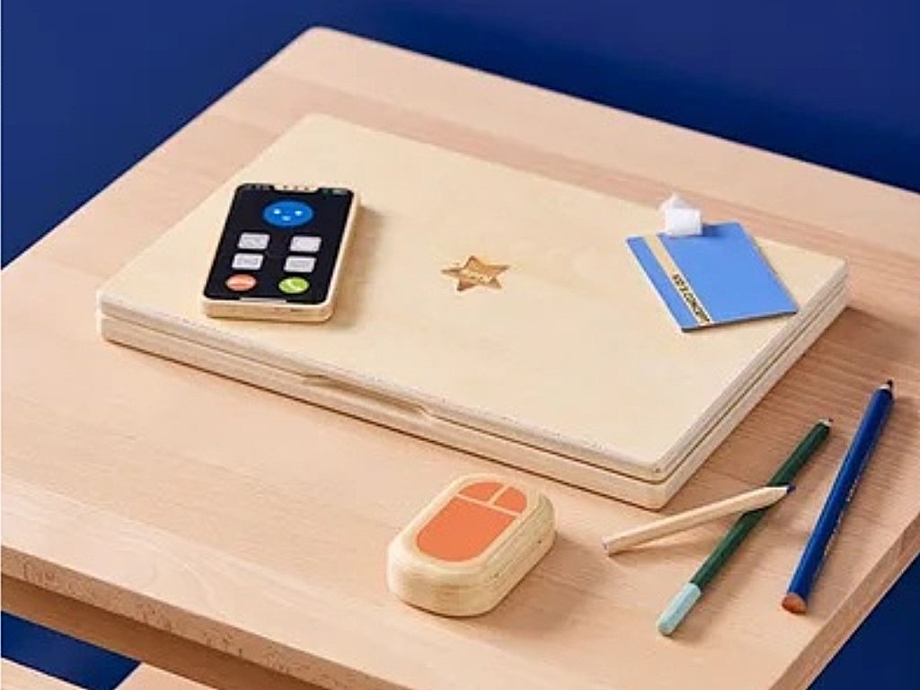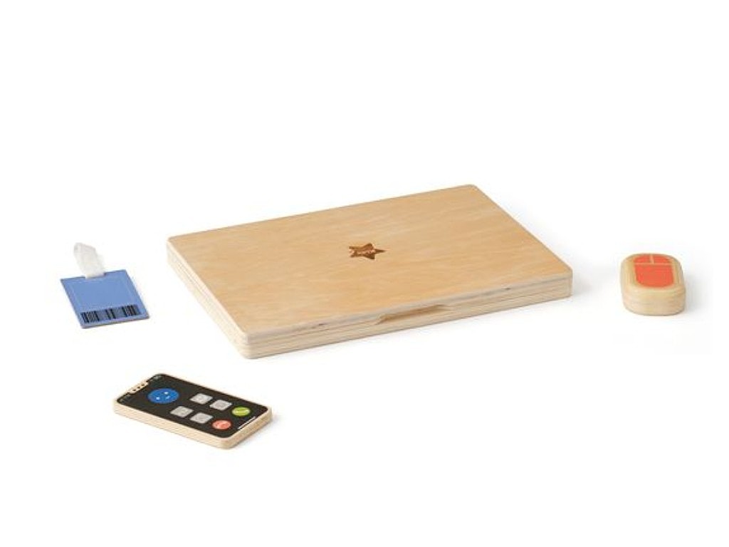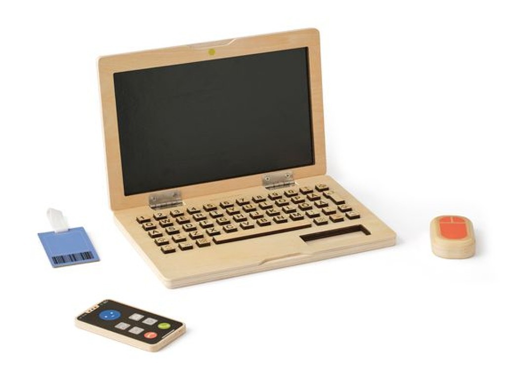 S dřevěnou počítačovou sadou mohou děti napodobovat dospělé, hrát role, což je pro jejich zdravý vývoj velmi důležité. Notebook obsahuje klávesy, které jdou stlačit, mobilní telefon, myš a ID odznak. Obrazovka notebooku funguje jako kreslící tabule, na kterou mohou děti psát křídami (nejsou součástí balení). Herní sada rozvíjí dětskou fantazii a nabízí dětem hravý a poutavý způsob jak poznat práci dospělých. Děti mohou s dětským počítačem zdokonalovat znalost písmen a číslic.