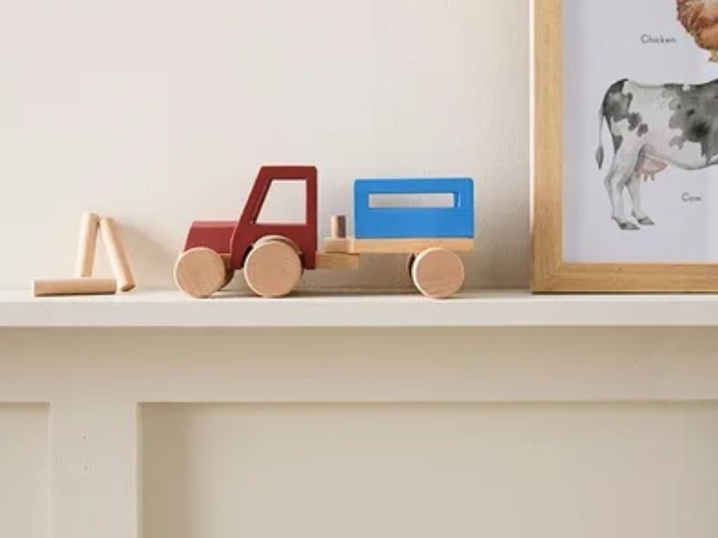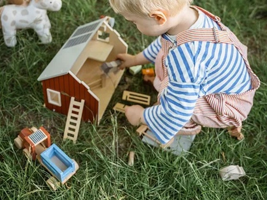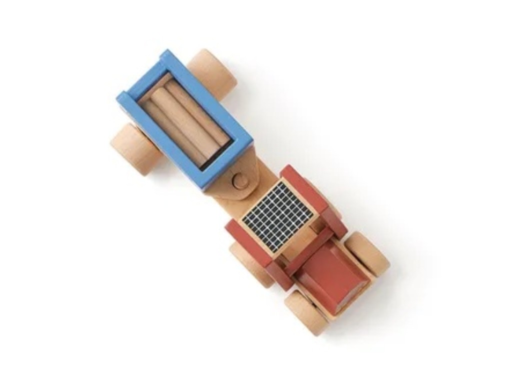 Dřevěný zemědělský traktůrek se solárním panelem na střeše bude krásnou hračkou pro kluky ale i holčičky. Traktor veze na odnímatelné vlečce klády, ale stejně dobře může povozit zvířátka nebo třeba kostky vašich dětí. Přiveze vše, co bude třeba k obstarání zvířátek z farmy, případně materiál na stavbu nebo úrodu ze zahrady a pole.