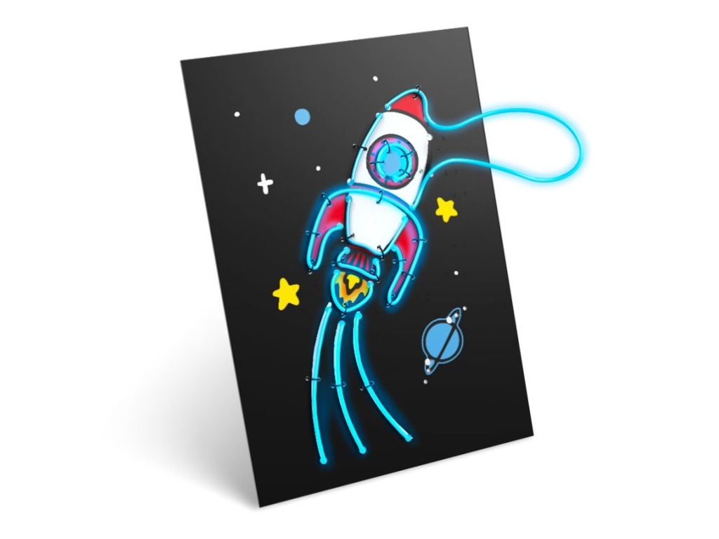 Neonová kreativní zábavaRozvíjí fantazii a jemnou motorikuKreativní sada ve výrazných barvách nabízí dětem nekonečné možnosti tvoření. Pomocí neonových nití, které lze vložit do perforované desky, si děti mohou vytvořit vlastní zářivé obrázky.Tento produkt není jen zábavou, ale také nástrojem pro rozvoj jemné motoriky a soustředění. Děti se při tvoření učí pečlivosti, trpělivosti a přesnosti.Ideální pro děti od 6 letBezpečné a snadné použitíSada je navržena pro děti od 6 let a představuje ideální dárek pro každé kreativní dítě. Barevné provedení osloví chlapce i holčičky, kteří si rádi zdobí svůj pokoj vlastnoručně vytvořenými dekoracemi.Bezpečná a intuitivní konstrukce zajišťuje jednoduché používání bez rizika při běžné manipulaci.Technické parametryObsah balení1x tištěný kartonový rám, 9× tištěné kartonové desky, 3x 2 m EL LED drátu, plastové pásky, 6× tužky, 1× návod, 1× krabice