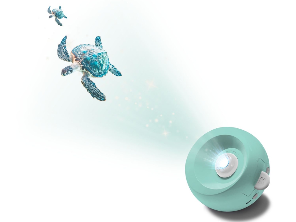 Kouzelná projekce oceánu. Podněcuje dětskou fantazii. Kompaktní projektor Kidystar promítá na strop dětského pokoje fascinující svět mořských živočichů a vytváří uklidňující atmosféru před spaním. Díky 6 vyměnitelným projekčním diskům nabízí různé motivy, které děti vtáhnou do podmořského dobrodružství. Pomalé otáčení projekce…