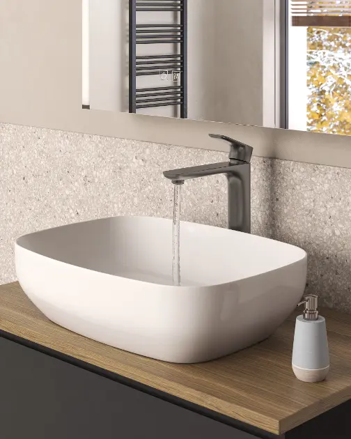 Kielle umyvadlo na desku 50x40cm, bílé barvy, perfektní řešení pro útulnou koupelnu. Bez otvoru pro baterii a přepadu, snadno se čistí a udržuje.