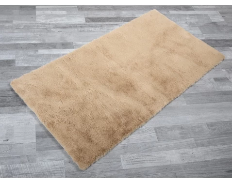Moderní koberec 60×120 cm v pískové barvě imituje králičí kožich a je tak příjemný nejen na pohled, ale hlavně na dotek.