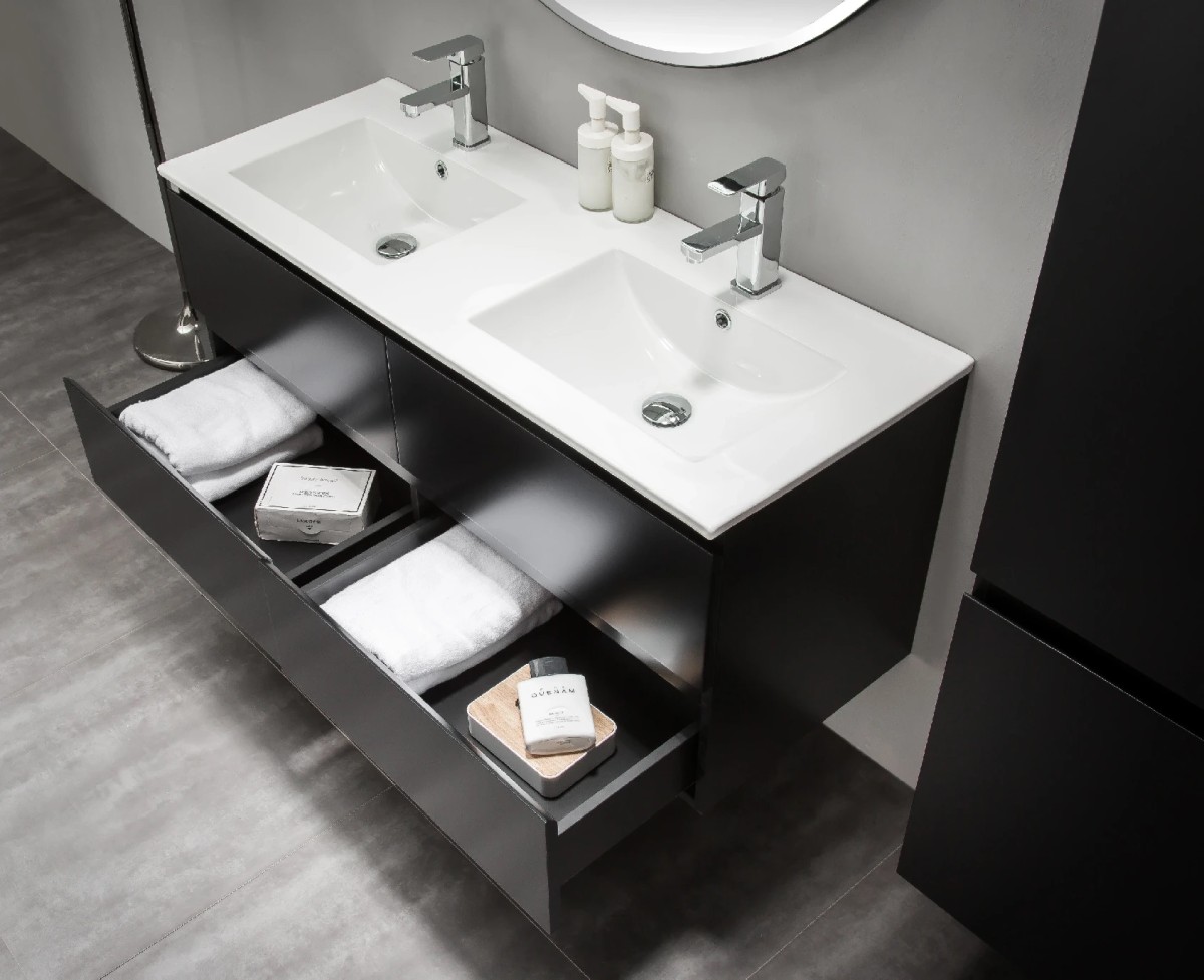 Barva:ČernáHloubka:46,5 cmŠířka:121 cmVýška:49,5 cmVýška zásuvky:22,5 cmPovrchová úprava skříňky:MatnáPočet zásuvek:4Materiál:DřevoUmyvadlo součástí:AnoInstalace:ZávěsnáŠířka umyvadla:120 cmVýška umyvadla:1,5 cmHloubka umyvadla:47 cmPovrchová úprava umyvadla:LeskláPřepad:AnoOtvor pro baterii:AnoClick-clack součástí:Ano