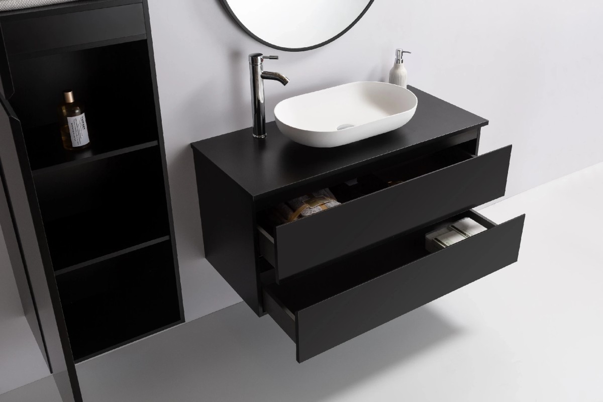 Barva:ČernáHloubka:46,5 cmŠířka:101 cmVýška:49,8 cmVýška zásuvky:22,5 cmPovrchová úprava:MatnáPočet zásuvek:2Materiál:DřevoUmyvadlo součástí:NeInstalace:ZávěsnáDeska součástí:AnoŠířka desky:100 cm