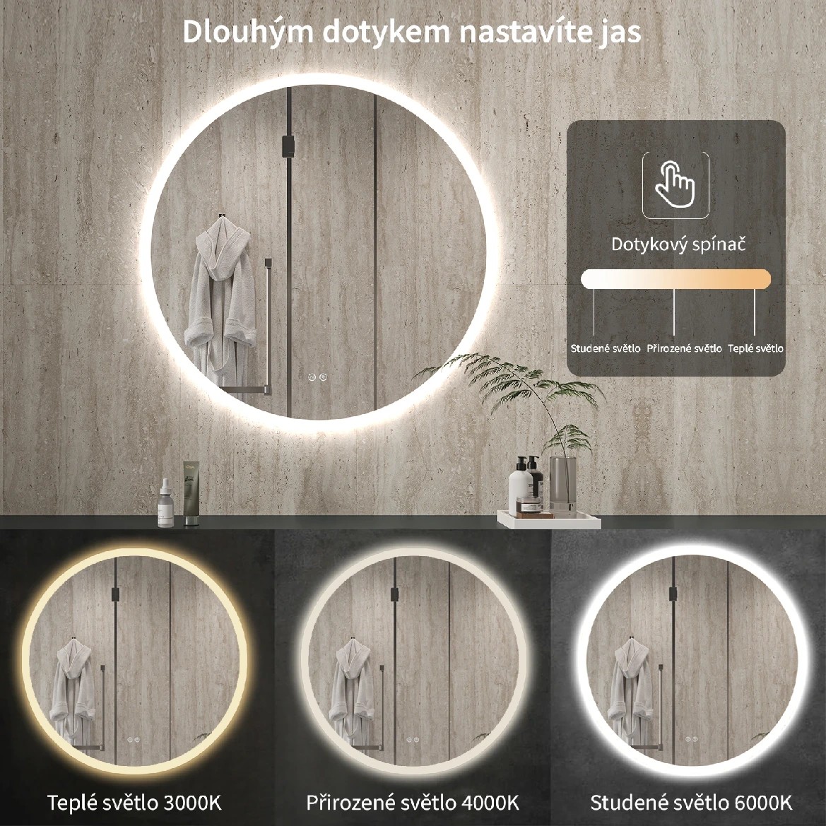 Směr osvětlení:Zadní a přední stranaŠířka:100 cmTvar:KulatýVýška:100 cmBarva světla:VolitelnáNastavitelný jas:NeOsvětlení LED:AnoVypínač:AnoOchrana:CE P44Napětí:200-240 VFrekvence:AC 50/60HzIP ochrana:54Intenzita osvětlení:800-900lmOchrana proti zamlžení:AnoŽivotnost:50000 hodinMateriál rámu:Hliník