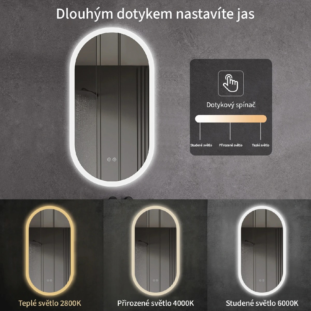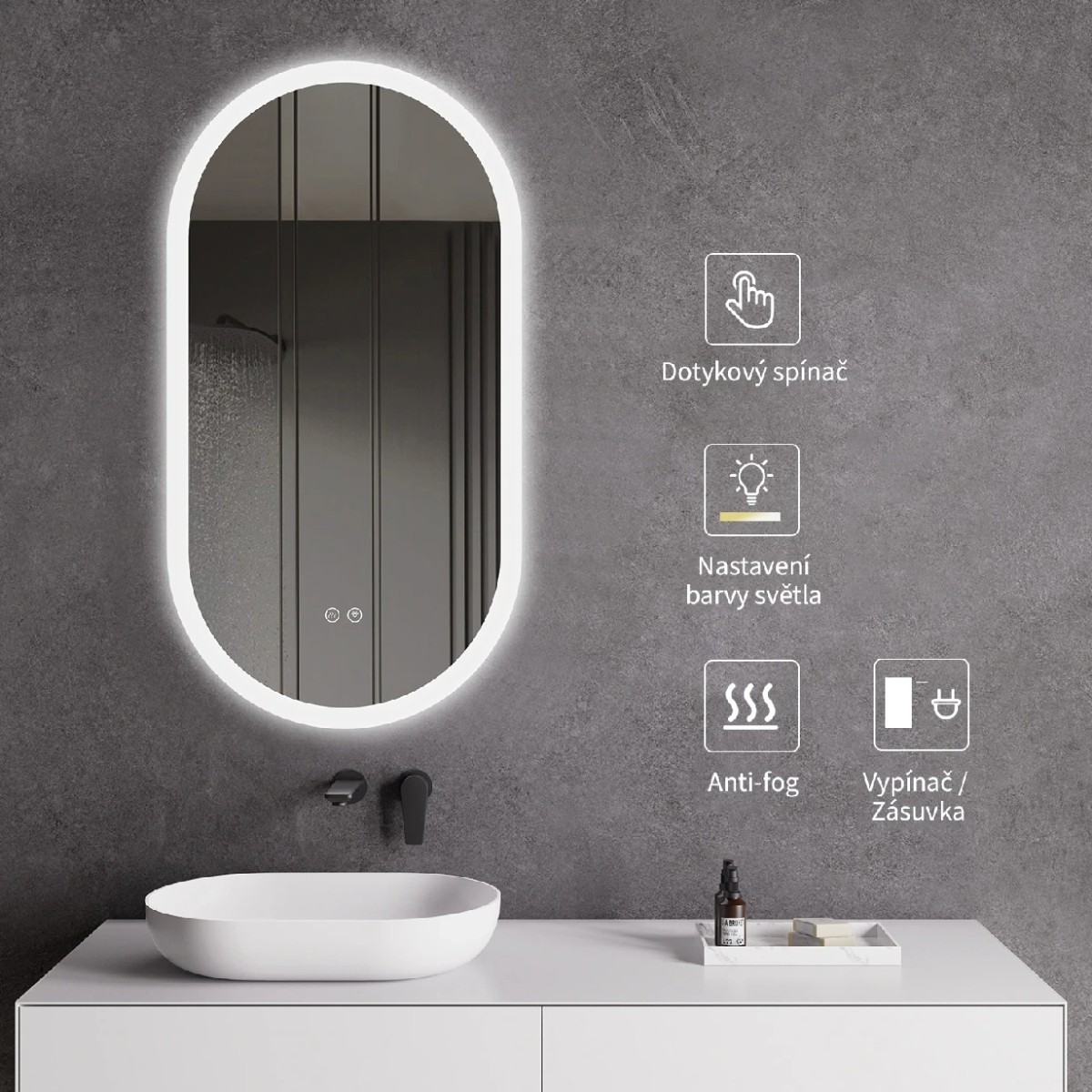 Směr osvětlení:Zadní a přední stranaŠířka:40 cmTvar:OválnýVýška:80 cmOsvětlení LED:AnoVypínač:AnoOchrana:CE P44Napětí:200-240 VFrekvence:AC 50/60HzIP ochrana:54Intenzita osvětlení:800-900lmOchrana proti zamlžení:AnoŽivotnost:50 000 hodin