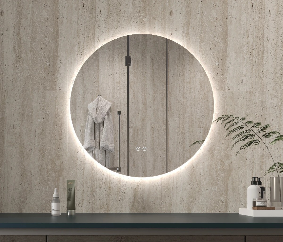 Koupelnové LED zrcadlo Verido – Ø 50 cm. Moderní a praktické řešení pro vaši koupelnu. Anti-fog fólie zajišťuje jasný pohled i při kondenzaci vlhkosti.