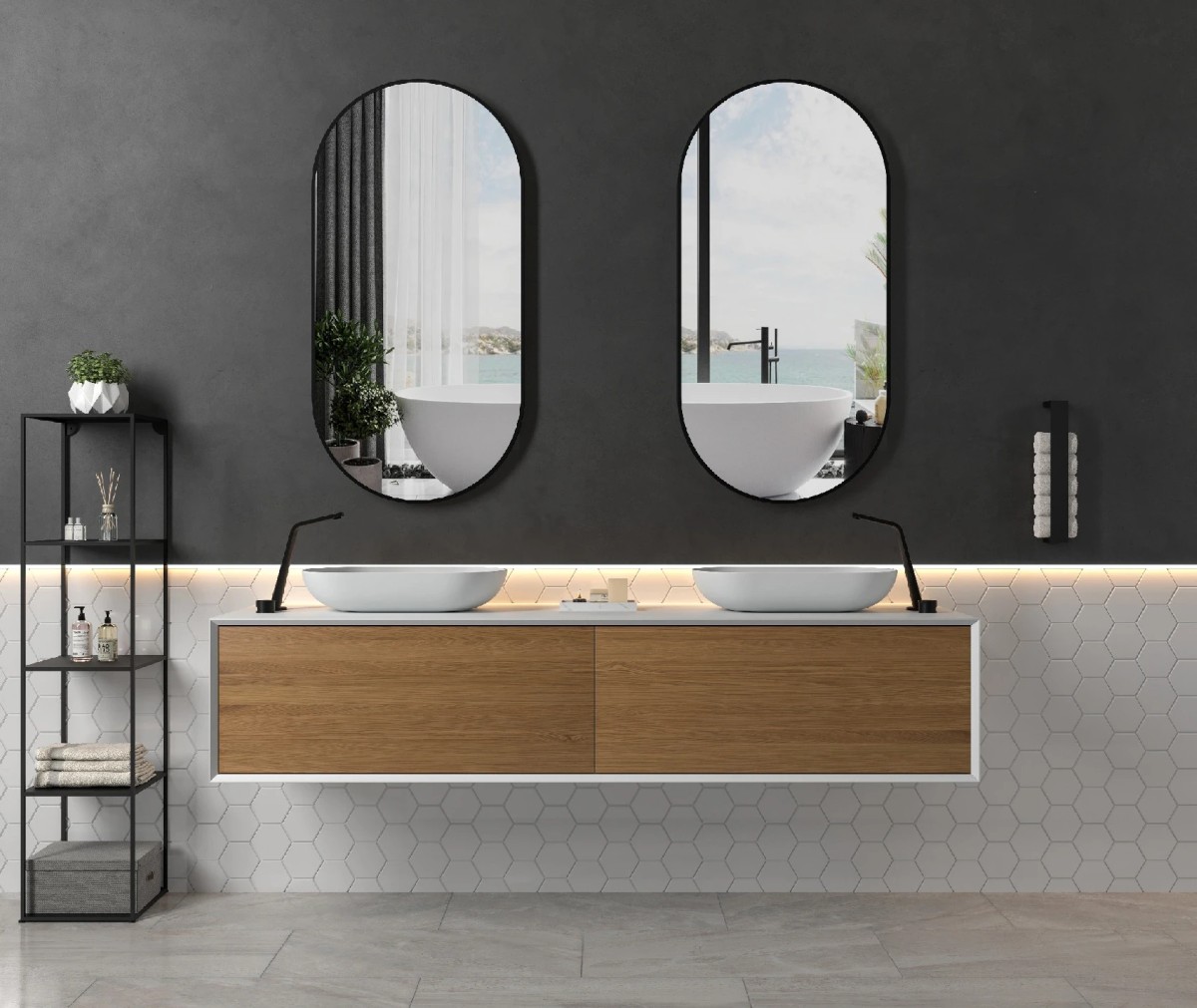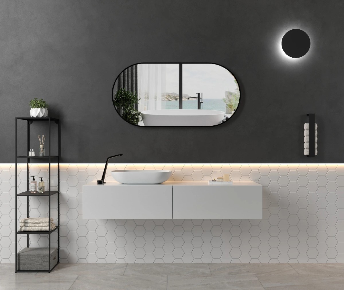 Barva:ČernáŠířka:55 cmTvar:OválnýVýška:100 cmPovrchová úprava:MatnáMateriál rámu:Kov