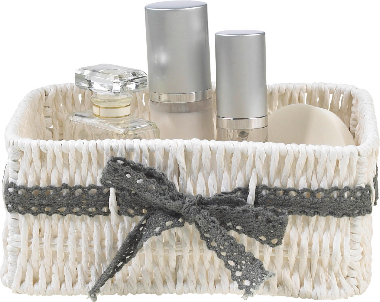 Tento ozdobný regálový koš si oblíbí každý milovník romantického rustikálního stylu! Doplněk o rozměrech cca 26 x 20 x 12 cm (D x Š x V) je vyroben z papíru a výborně se hodí pro rozdělení prostoru ve skříni nebo jako vkusný odkládací prostor na komodu. Okouzlující bílá barva je doplněna o šarmantní ozdobnou mašličku v šedé. Regálový koš, který sluší! – BÍLÁ, ŠEDÁ – Z PAPÍRU – D/Š/V: 26/20/12 CM
