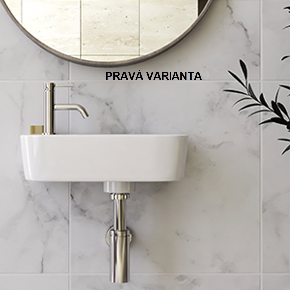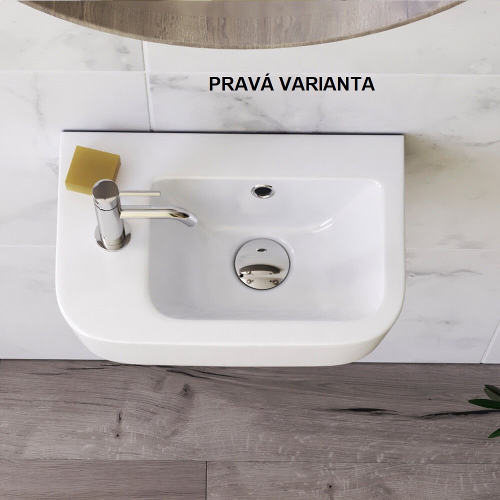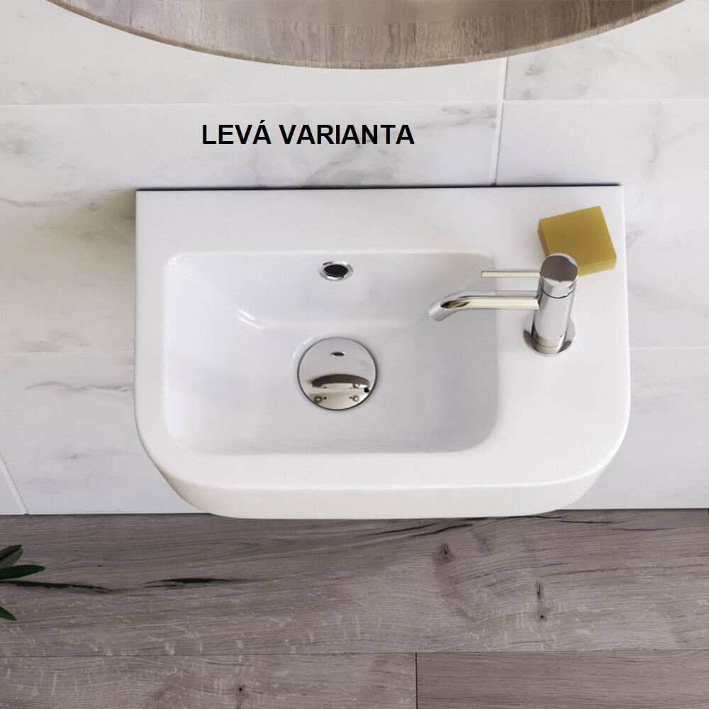 Mini keramické umyvadlo se zaoblenými rohy s otvorem pro baterii, sprepadem.
