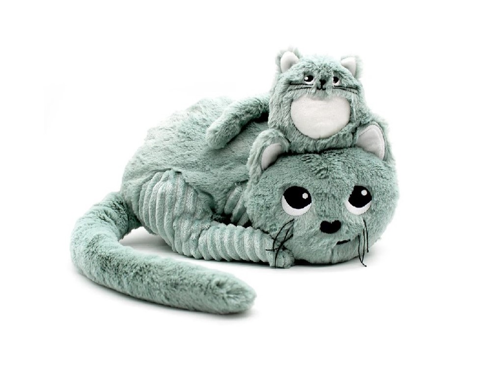 Roztomilé malé koťátko se ukrývá u maminky v bříšku a čeká s ní na nového kamaráda – vaši holčičku nebo chlapečka. Plyšáček v ideální velikosti na mazlení bude perfektním společníkem pro nová dobrodružství i pro chvilky oddechu při odpoledním nebo nočním spánku. Děti jistě vymyslí velkou spoustu akcí, na kterých malá kočička s maminkou nesmí chybět. Například letní piknik na dece, prázdniny u babičky na venkově nebo cesta k doktorovi na preventivní prohlídku.
