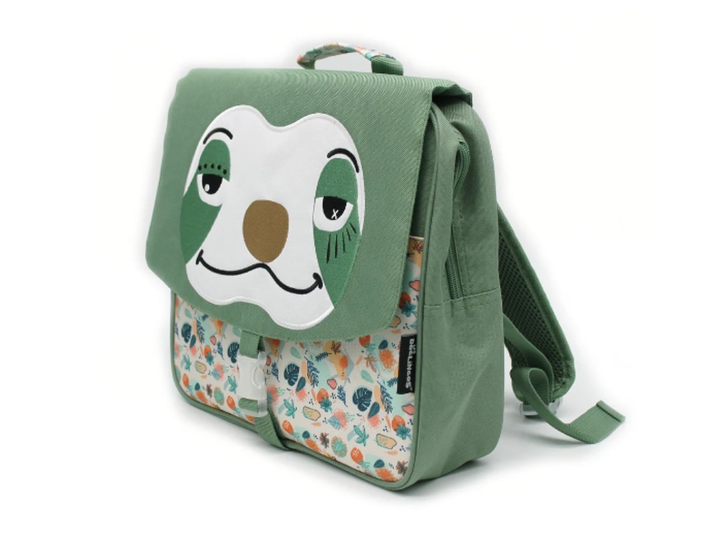 Aktovka, školní brašna s roztomilým lenochodem nabídne dětem spoustu prostoru na nezbytné školní vybavení i svačinu. Vše si rozdělí do přední kapsy na suchý zip a velkého hlavního prostoru, který nabízí ještě několik menších úložných kapes. Do aktovky se vejdou sešity i učebnice ve formátu A4 a kromě nastavitelných polstrovaných popruhů na nošení je vybavena i poutkem na uchopení či pověšení a štítkem pro zapsání jména.