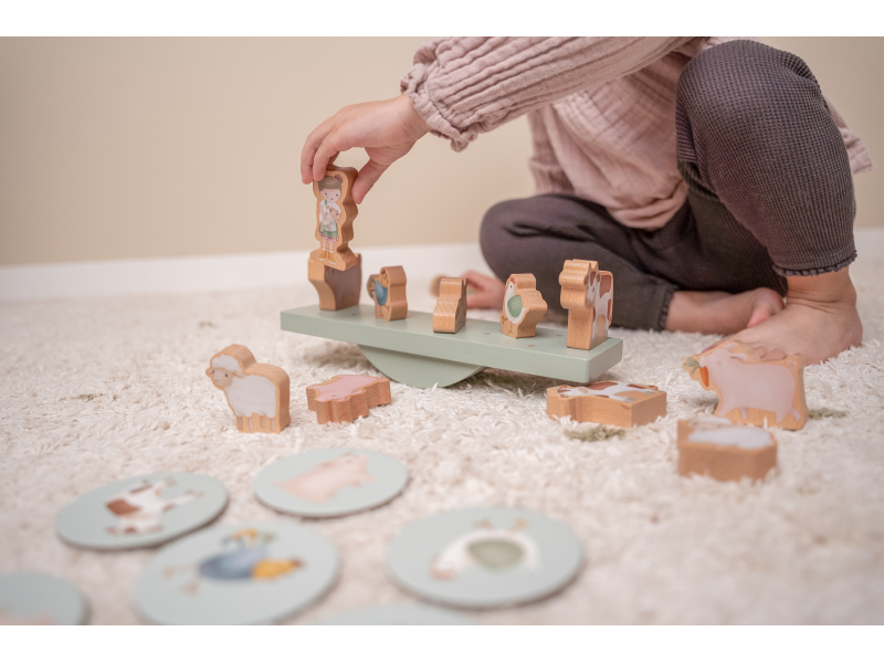 Dávejte pozor, abyste houpačku příliš nerozhoupali, jinak figurky spadnou! Hra rozvíjí koordinaci ruka – oko a jemné motorické dovednosti vašeho dítěte. Balanční hra je vhodná pro 1 – 4 hráče, může tak zabavit celou rodinu. Hra obsahuje 11 kulatých ilustrovaných karet, 1 houpačku, různá zvířátka z farma a postavičky Jima a Rosu.