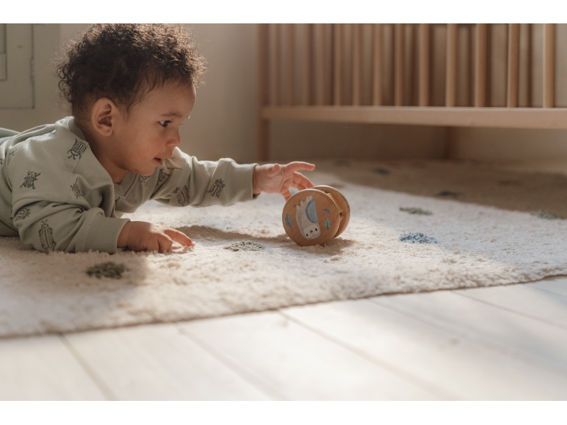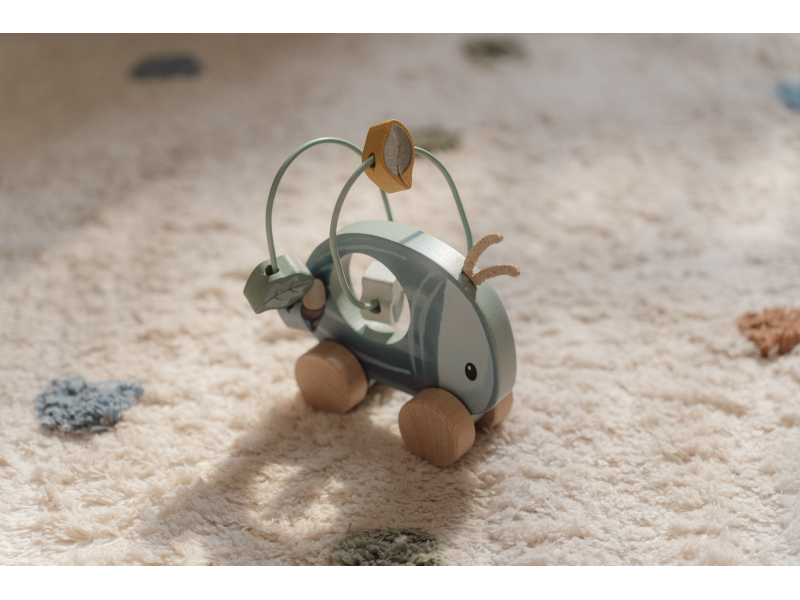 Jakmile se děti začnou trochu pohybovat, začne je lákat každá kutálející se hračka, která je na dosah. Dřevěné chrastítko v podobě válečku s milou sovičkou jemně cinká a bude tak děti povzbuzovat k dalším a dalším pohybům. S nasazovací hračkou s jednoduchým tvarem lesní houby s broučkem děti snadno díky nasazování procvičí motorické dovednosti a zvýší svoji trpělivost. Pro učení hrou slouží i třetí hračka, kterou je labyrint s posunovacími korálky v designu roztomilého lesního broučka na kolečkách.