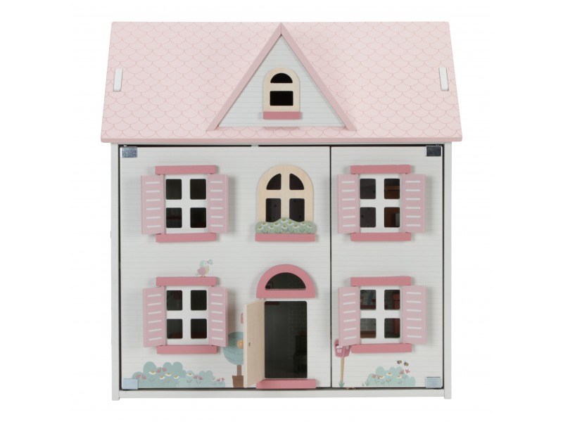 Bílý domeček pro panenky s růžovou střechou a okenicemi okouzlí každou holčičku. Zavírací okenice a otevírací střecha dodají hře nový rozměr. Část střechy lze snadno proměnit v zahradu, na které mohou přímo před domem posedět panenky, které jsou součástí balení. Interiér domečku pro panenky je velmi detailní a zdobený krásnými ilustracemi.