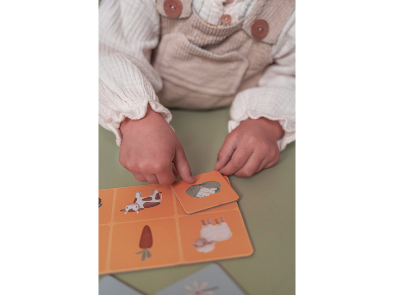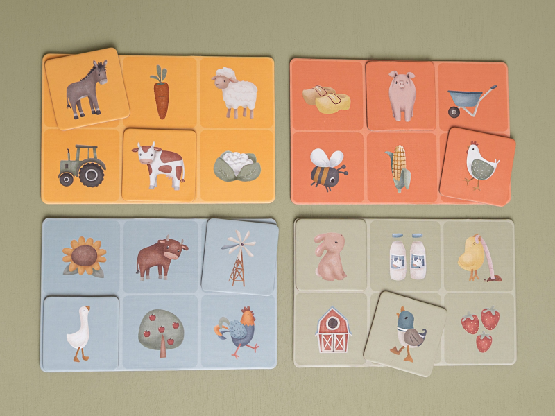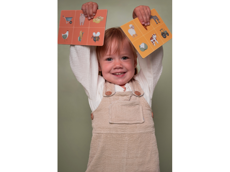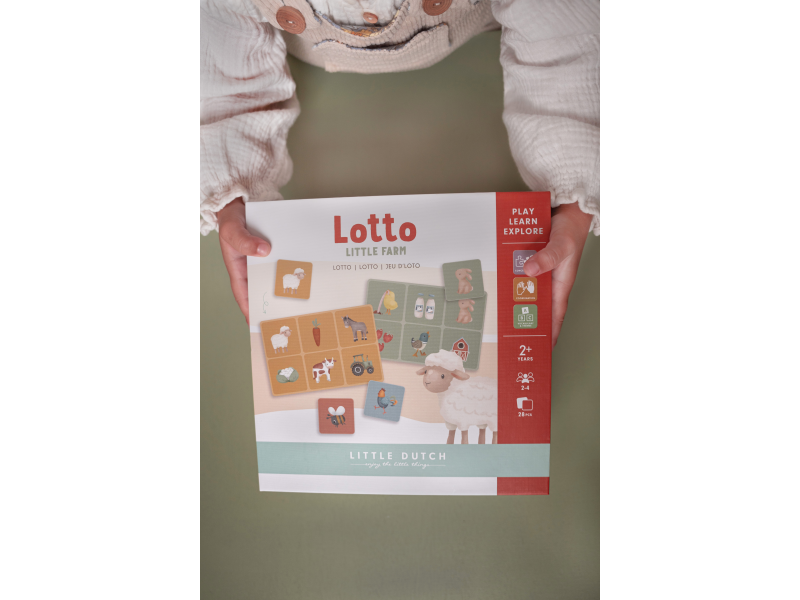 Hra Lotto pomáhá dítěti naučit se soustředit se a stimulovat sociální dovednosti. Hra je určena pro 2 až 4 hráče. Obsahuje čtyři desky s motivy ze života na farmě. Otočte kartičku a zkontrolujte, zda je na vaší desce. Hru vyhrává ten, kdo první najde všechny obrázky na své desce.