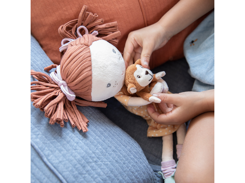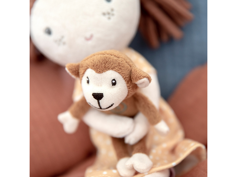 Měkký materiál pro příjemné hraníBezpečná volba pro nejmenšíPlyšová panenka Sofie z jemného měkkého materiálu je ideální jako první panenka pro malé děti od 12 měsíců. Díky příjemnému provedení je vhodná na hraní i mazlení a pomáhá navodit pocit bezpečí při usínání.Panenka drží malou plyšovou opičku připevněnou suchým zipem, která podporuje fantazii i samostatnou hru. Dodává se v krásné dárkové krabičce, takže potěší i jako milý dárek.