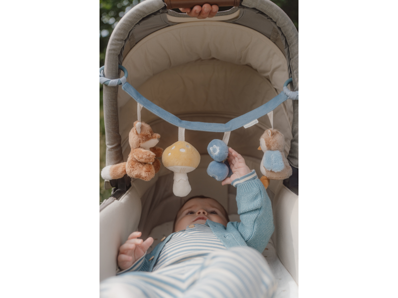 Roztomilé plyšové hračky zabaví vaše miminko na cestách v kočárku i v autě. Díky univerzálnímu systému připevnění řetízek s snadno chytíte na autosedačku i dětský kočárek. Jednotlivé hračky při zkoumání dětskými ručičkami chrastí a šustí, stimulují dětské smysly. Hračky zdokonalují motorické dovednosti a koordinaci ruka/oko.