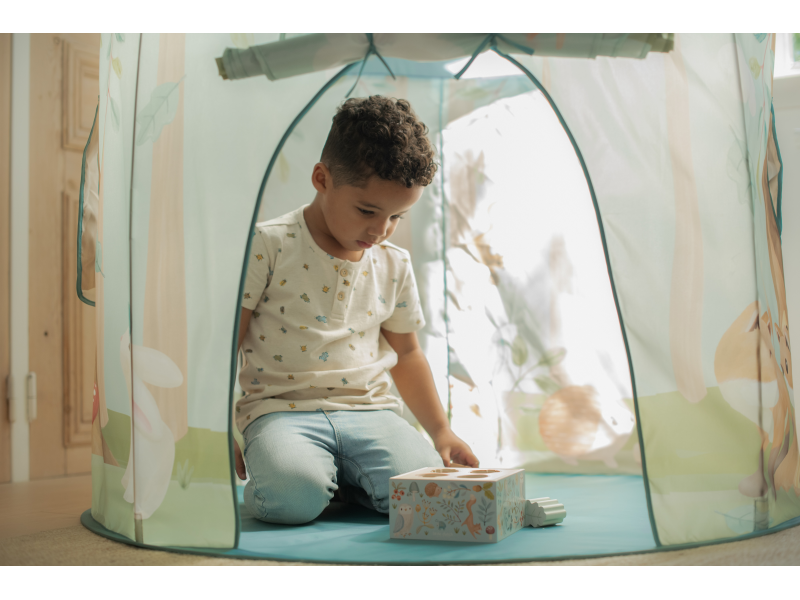 Výhody produktu Podpora fantazie Motivy lesa a zvířátek stimulují dětskou představivost a podporují kreativní hry. Bezpečnost při hraní Stan je určen pro děti od 2 let a je navržen tak, aby poskytoval bezpečné prostředí. Kvalitní materiál Vyroben z 100% polyesteru, který je odolný a snadno se udržuje čistý. Snadné skladování Jednoduchá konstrukce umožňuje snadné složení a úsporné skladování. Všestranné použití Ideální pro umístění do dětského pokoje nebo jiných interiérů pro hraní na zemi. Atraktivní design Poutavý potisk s motivy přírody a zvířátek zaujme každé dítě. My v ELIS DESIGN jsme sami rodiče dětí různého věku a záleží nám na tom, s čím si hrají. Proto i pro vaše děti vytváříme a vybíráme smysluplné hračky z kvalitních, nejlépe přírodních, materiálů, inspirované montessori, které nejen zabaví, ale i rozvíjí. Je stan vhodný pro venkovní použití? Stan je určen pro použití v interiéru. Jaké jsou rozměry stanu? Rozměry stanu jsou 105 x 105 x 125 cm, výška je 125 cm. Jaký materiál je použit na výrobu stanu? Stan je vyroben z 100% polyesteru.