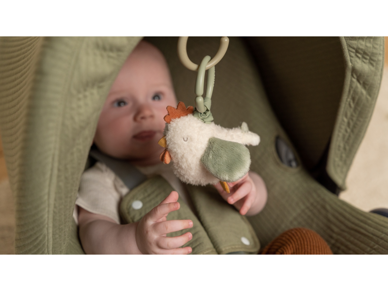 Heboučká plyšová slepička může dělat vašemu miminku společnost doma i na cestách. Slepička zavěšená na kočárku, postýlce nebo autosedačce se vašemu miminku postará o zábavu, stačí za ni zatáhnout a slepička začne vibrovat a legračně poskakovat. Plyšovou hračku je možné snadno zavěsit na autosedačku, kočárek či hrazdu na hrací dece.