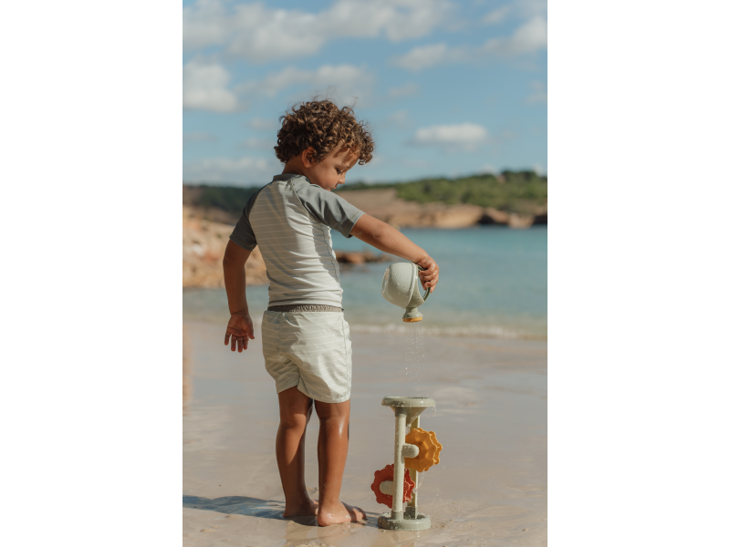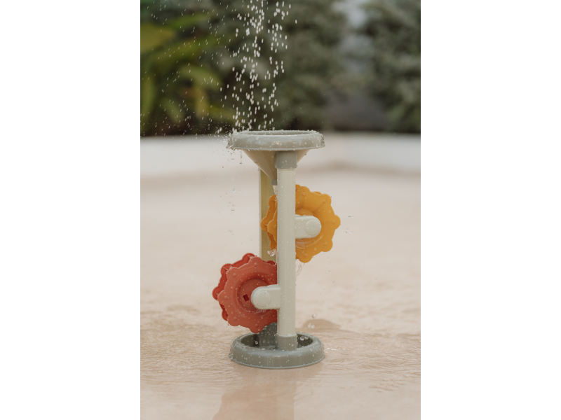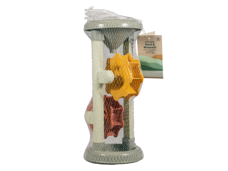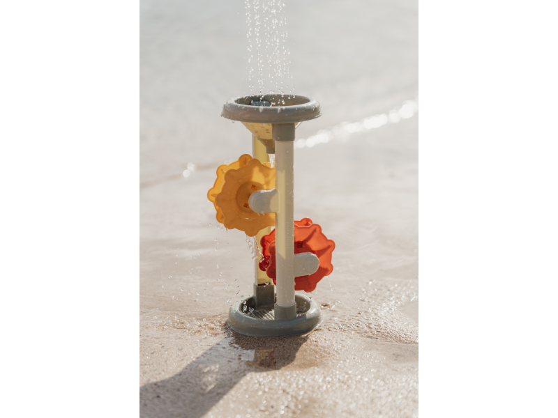 Stačí do trychtýře v horní části nalít vodu nebo nasypat písek a pak už jen pozorovat, jak se mlýnská kola roztáčí. Hračka vhodná na zahradu i na pláž je vyrobena z pevného a kvalitního plastu.