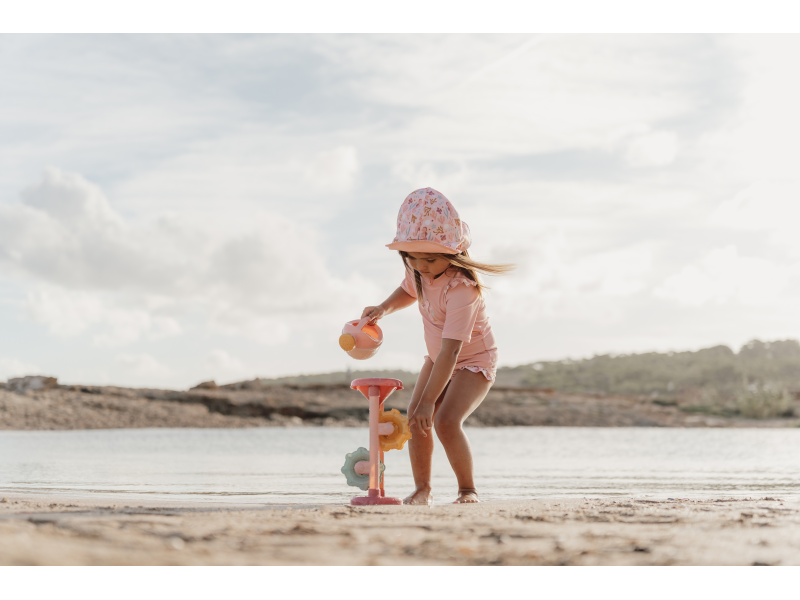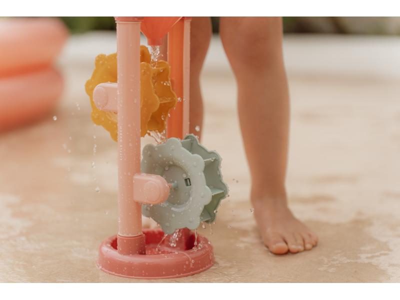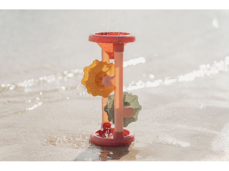 Stačí do trychtýře v horní části nalít vodu nebo nasypat písek a pak už jen pozorovat, jak se mlýnská kola roztáčí. Hračka vhodná na zahradu i na pláž je vyrobena z pevného a kvalitního plastu.