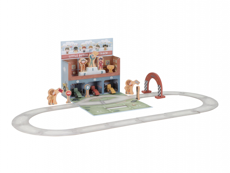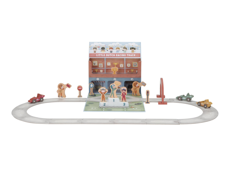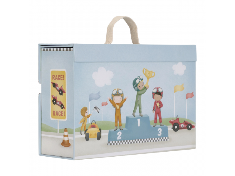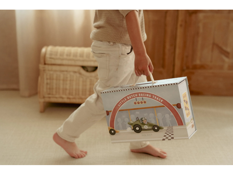 Snadná přenosnost a skladnostVše v jednom kufříkuZávodní dráha s doplňky je kompaktně uložena v praktickém kufříku, který slouží v rozloženém stavu jako depo na závodišti. Ideální hračka pro děti, které si chtějí hrát kdekoliv.Ve vybavení dráhy nechybí dřevěná závodní auta s řidiči, cílová páska, dopravní značky, stupně vítězů ani zlatý pohár pro šampiona.Interaktivní a zábavná hraPodporuje kreativitu a fantaziiZávodní dráha se skládá z kartonových dílů, které do sebe snadno zapadají jako puzzle. Děti mohou sestavovat různé trasy a vytvářet vlastní závodní scénáře.Hra s dráhou rozvíjí dětskou představivost a motorické dovednosti, je to skvělý způsob, jak podpořit rozvoj dětí a zábavu zároveň.Technické parametryDetailní specifikace produktuParametrHodnotaMateriáldřevo s certifikátem FSC, karton