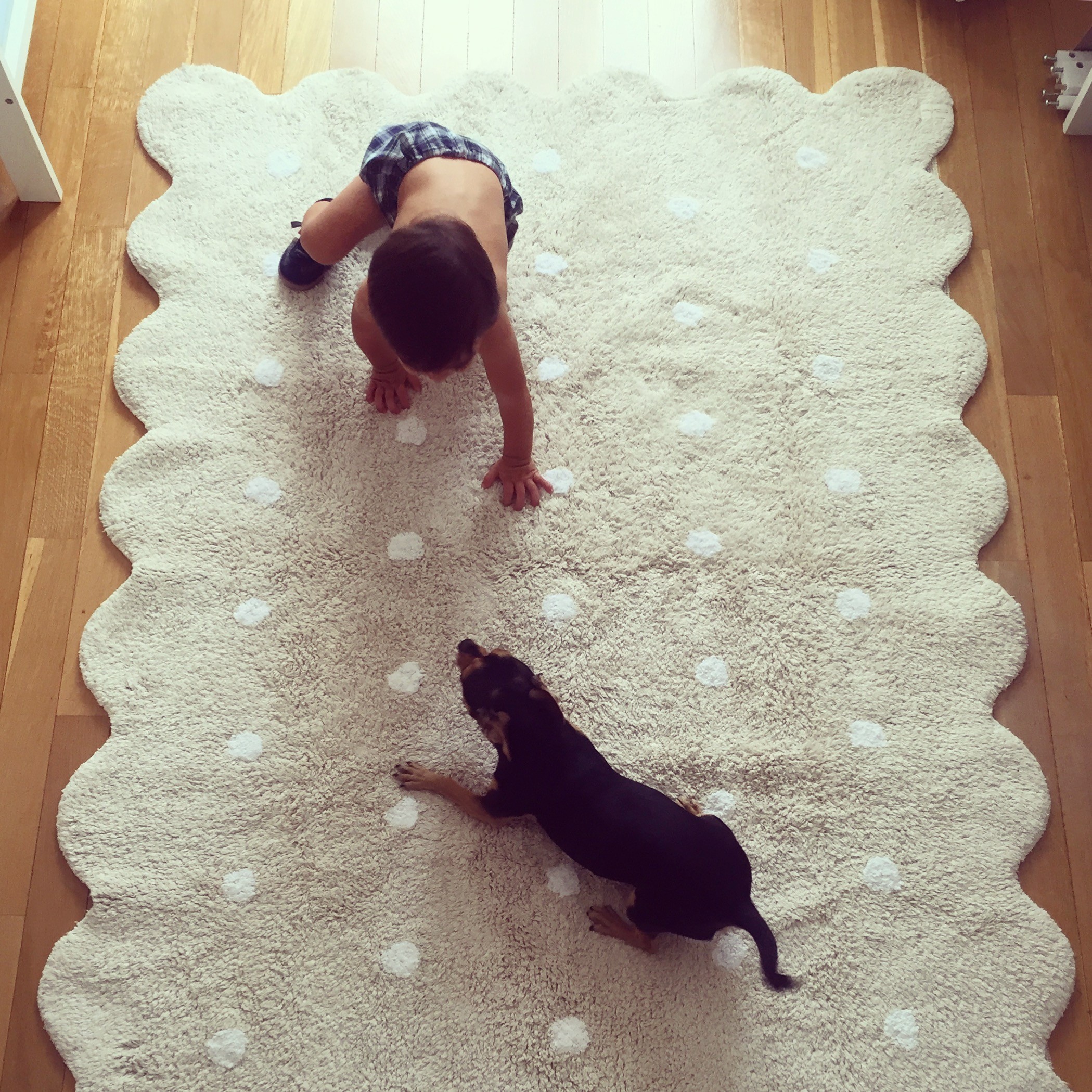 Měkký a hebký koberec v neutrální béžové barvě může vkusně doplnit jakoukoli místnost u vás doma. Bude mu to stejně dobře slušet v dětském pokojíčku, v ložnici, v pracovně i obývacím pokoji. Svým originálním tvarem a vzorem puntíků nápadně připomíná oblíbené sušenky, jistě by byl tedy vhodným kouskem i do jídelny.
