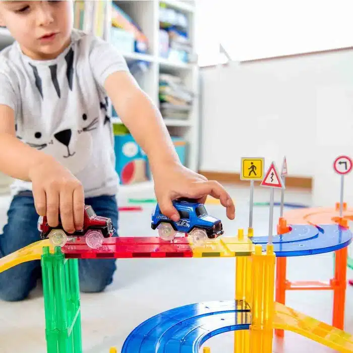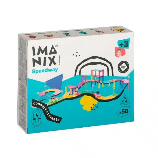 Magnetická stavebnice Imanix Speedway nabídne dětem 50 dílů pro stavění fantastické autodráhy. Děti mohou pomocí různých geometrických bloků, 2D a 3D dílků postavit vlastní závodní dráhu. Při navrhování dráhy pro 2 autíčka budou kluci a holky vytvářet různé okruhy se zatáčkami, svahy a mosty doplněné značkami. Skládačka Imanix umožňuje dětem stavět 2D tvary a 3D stavby, mohou tak krásně rozvíjet fantazii, kreativitu a také týmovou spolupráci v případě, že si ke stavění přiberou parťáka v podobě sourozence, rodiče nebo kamaráda.