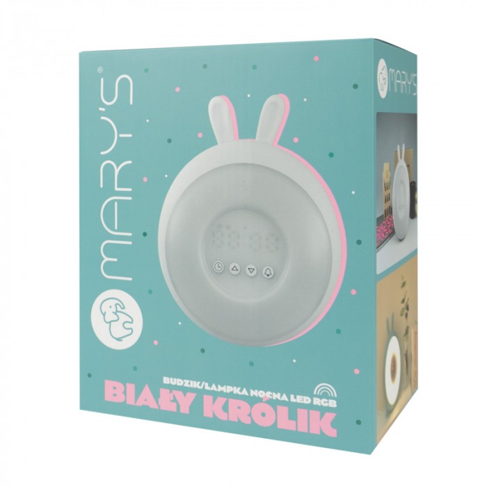 Noční budík a lampička v jednom zaujme na první pohled, kombinuje atraktivní design v králičí podobě a praktické funkce. Budík v bílé barvě bude elegantním řešením pro každou místnost. Bílý design z odolných a bezpečných materiálů zajišťuje nejen atraktivní vzhled ale i dlouhou životnost.