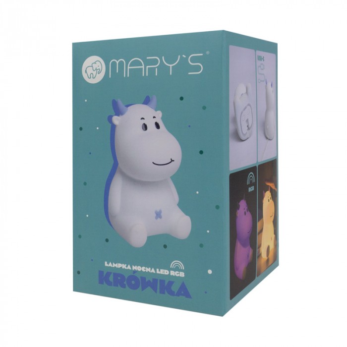 Noční LED lampička v podobě roztomilé kravičky je okouzlující a funkční světlo, které kombinuje atraktivní design a praktické funkce. Bílá lampa s modrými detaily je ideální do dětského pokoje, poskytuje příjemné osvětlení, které pomáhá s usínáním a vytváří útulnou atmosféru.