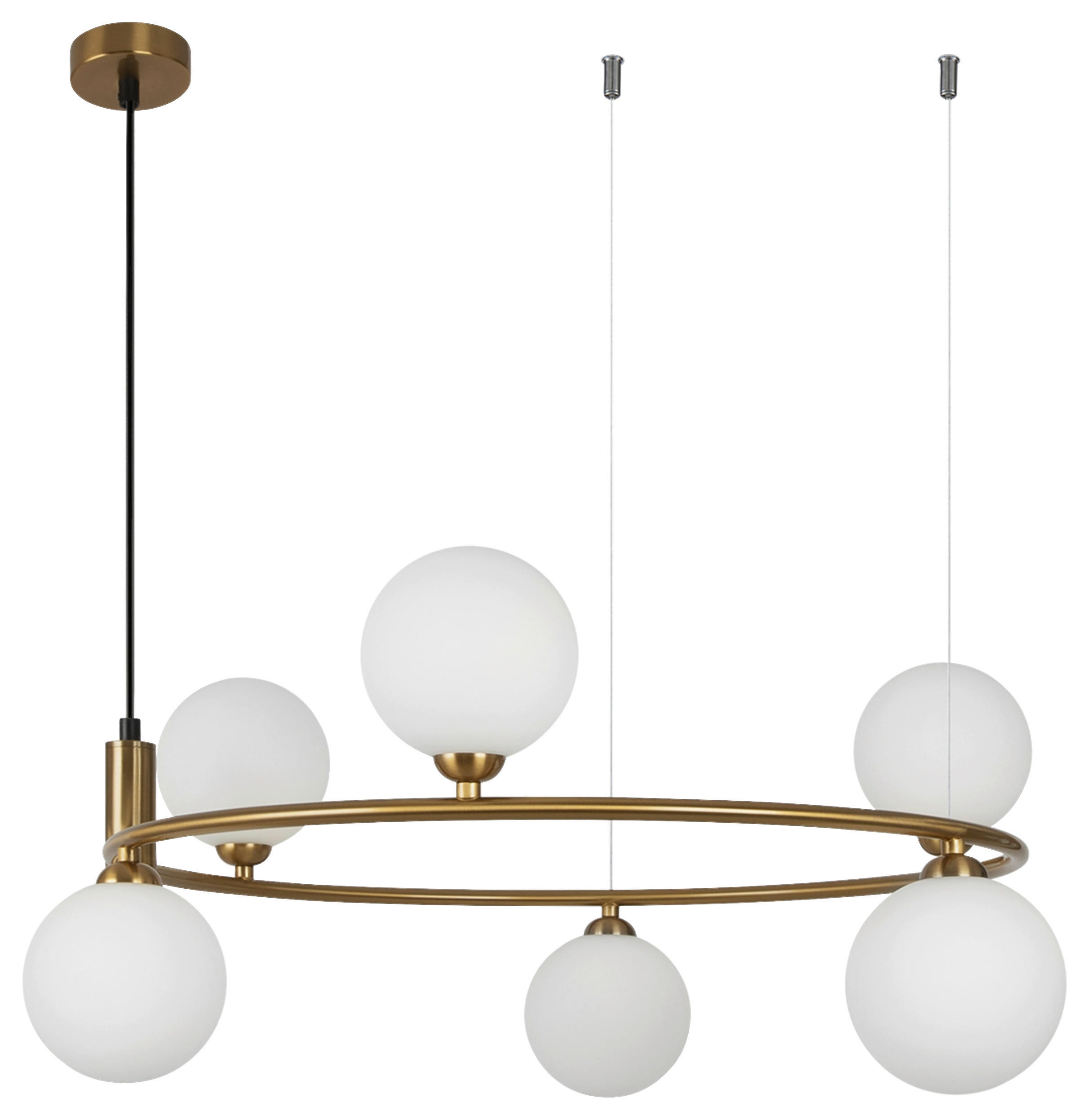 STROPNÍ ZÁVĚSNÉ SVÍTIDLO, 58/34-184 cm – TYP: MOD013PL-06BS1, MESSING, – DIFFUSOREN MATTIERTES GLAS, – METALLRAHMEN, BHT:58/28/65