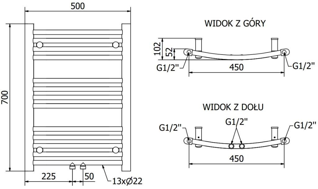 – 4xG ½″ shora a zdola na pravé nebo levé straně