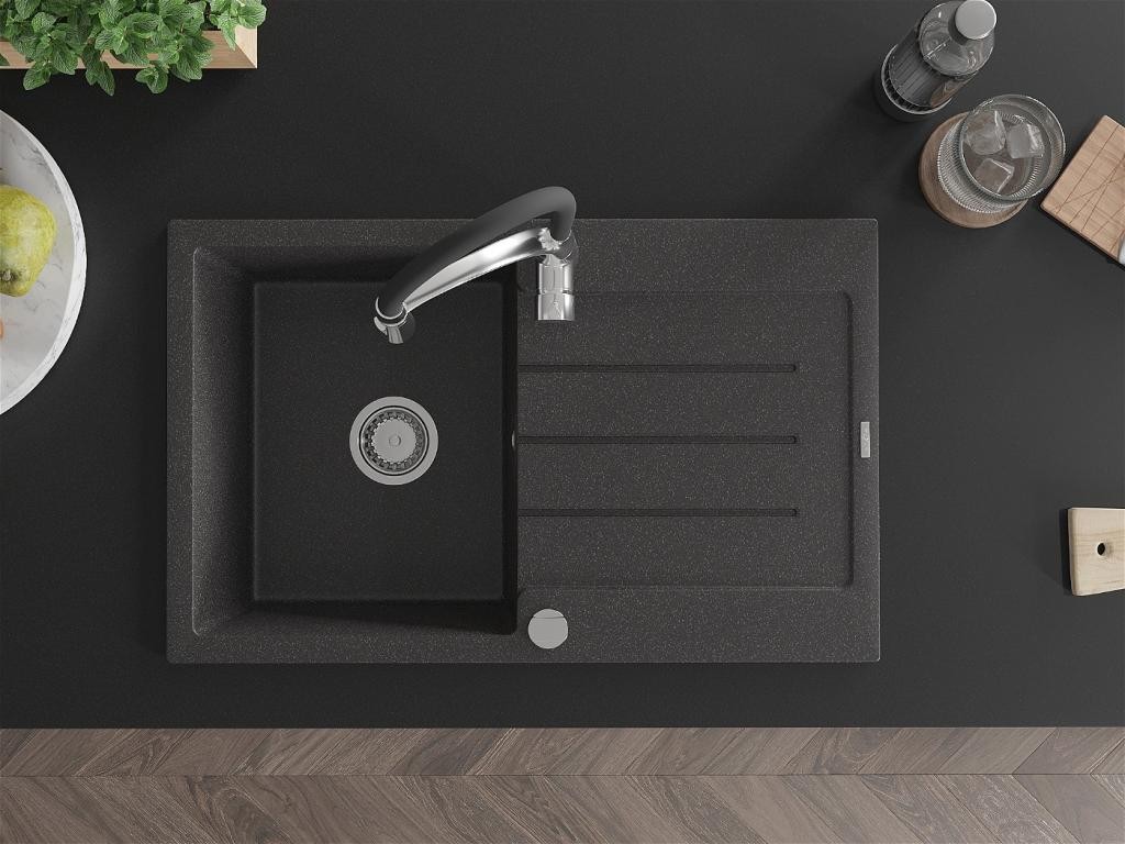 959 KčMEXEN – Bruno granitový dřez s odkapávačem včetně baterie Aster, černá kropenatá 6513-76-73450-07