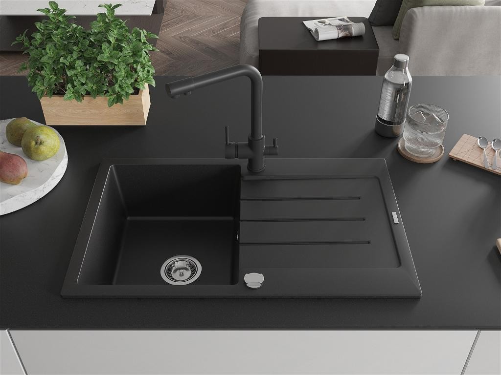 4 599 KčMEXEN – Bruno granitový dřez s odkapávačem včetně baterie Duero, černá 6513-77-671600-70